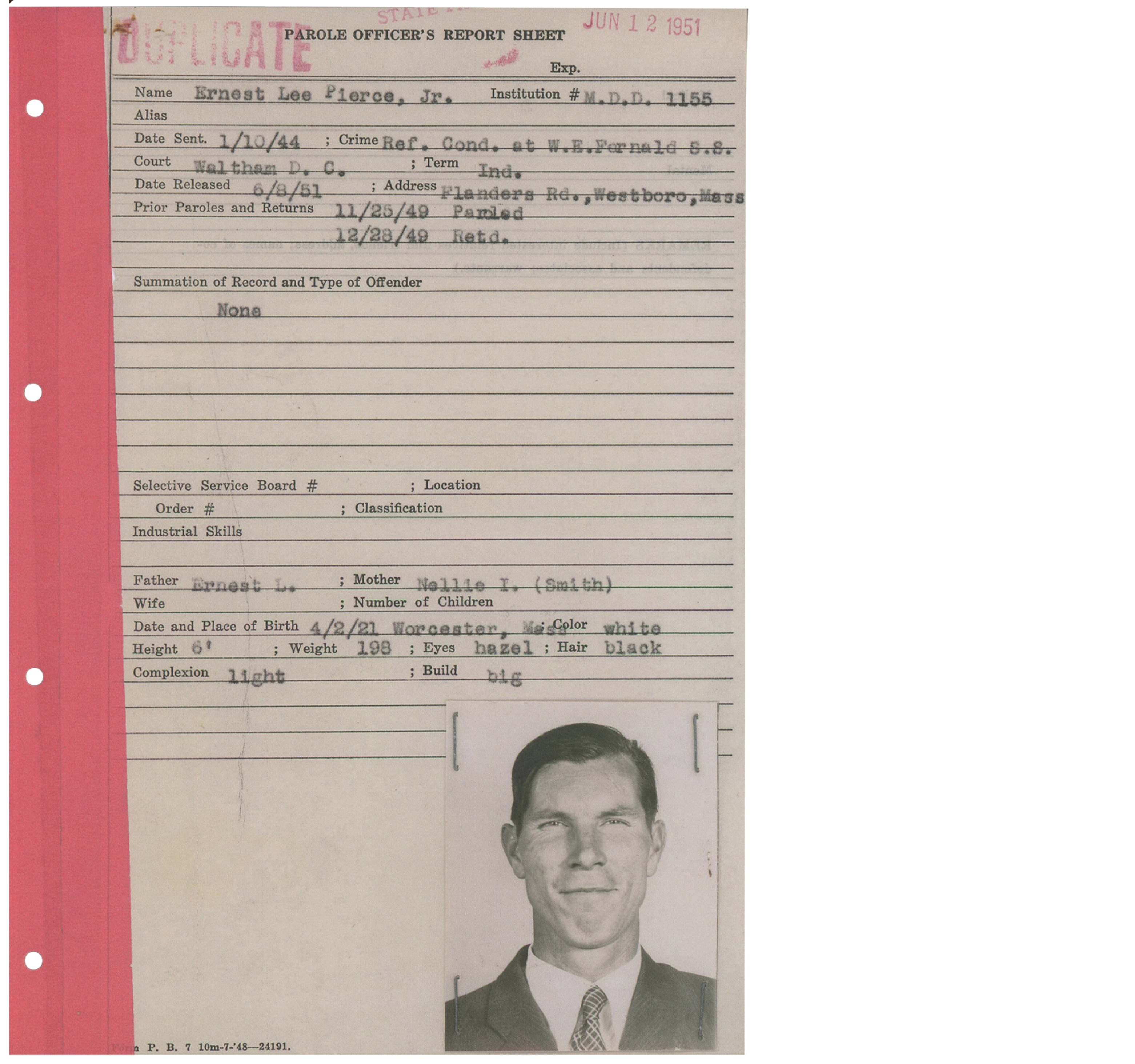 Ernest Pierce Jr. was considered a mad genius. Battling mental illness and personal demons, he went in and out of prisons and asylums in the 1940s. His criminal record included assault charges against officers, citizens and guards. He also had a passion for drawing, which he actively practiced while in prison. As he was not allowed to use sharp objects, he collected pencils tips and scraps from the floor to make his own drawing materials. It could take him weeks to finish even a small piece. While serving a sentence at the Boston State Farm, his hidden collection of drawings was discovered and confiscated by a guard. Later that year, Pierce threw himself from a third-floor window.