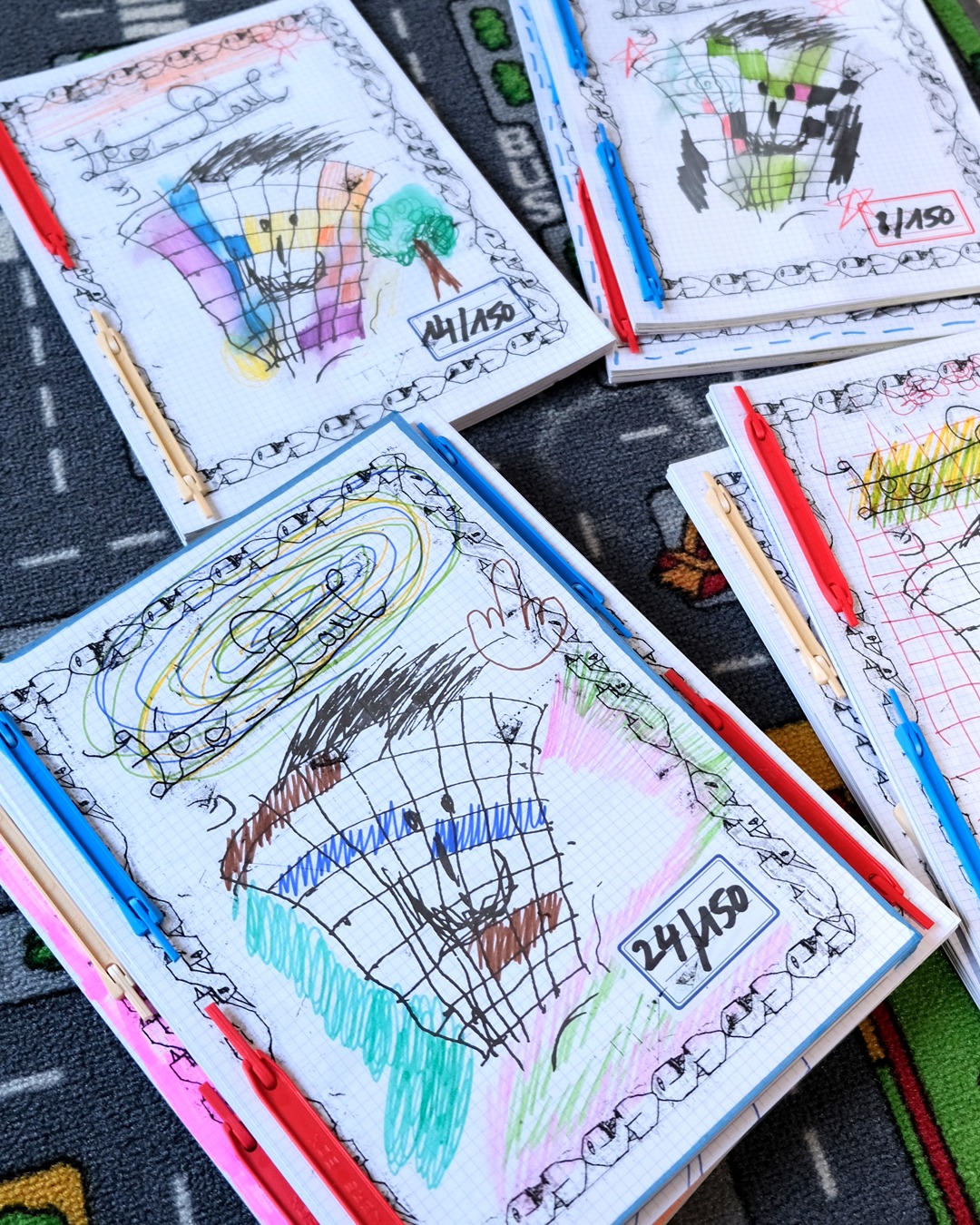 d’écolier, de brouillon, de texte, tickets de métro, carnets à spirale, copies